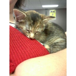 I chose the gray one, sight unseen. Only, when she arrived at six weeks old, she wasn't gray at all. A mixture of tiger stripes and tortie. She was beautiful. I fell in love with her instantly.